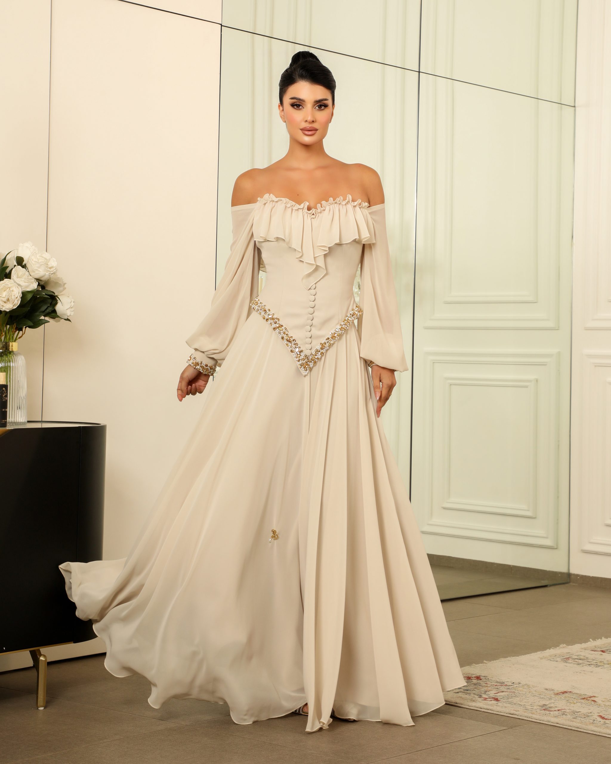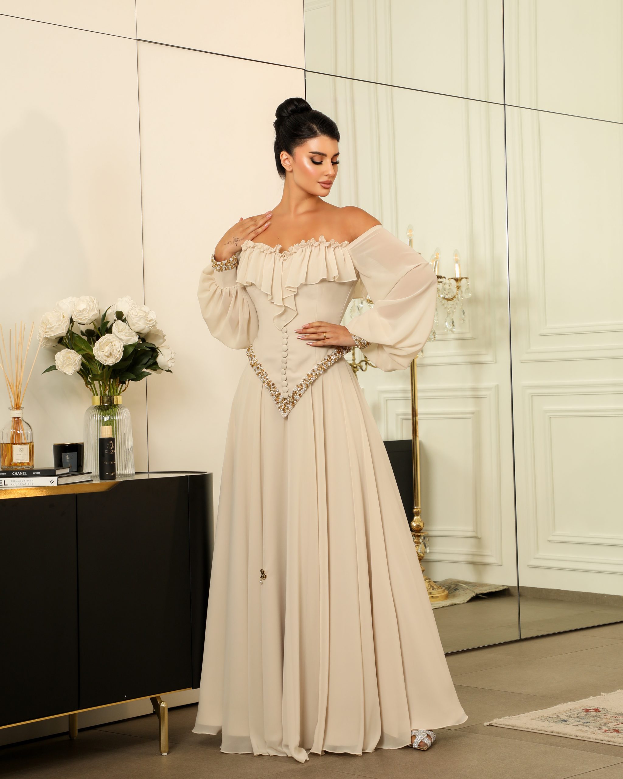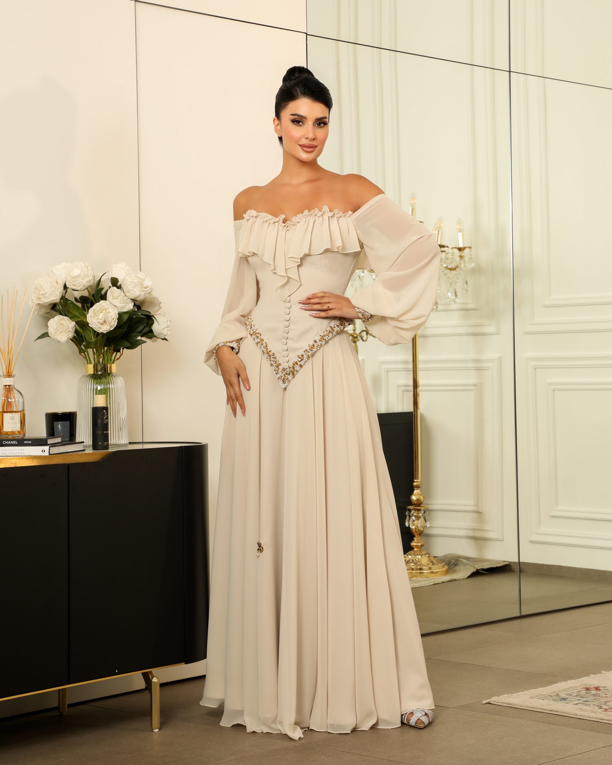 القماش : حرير وسط و شيفون