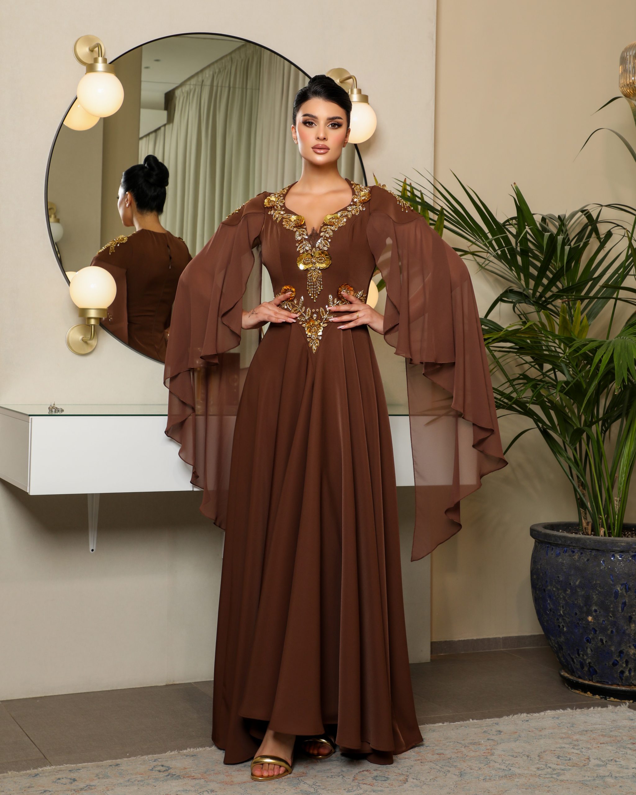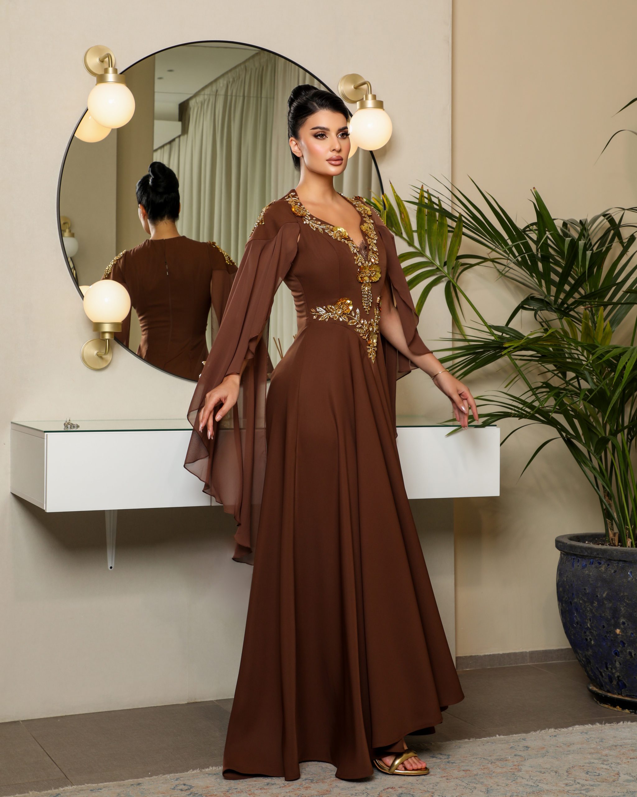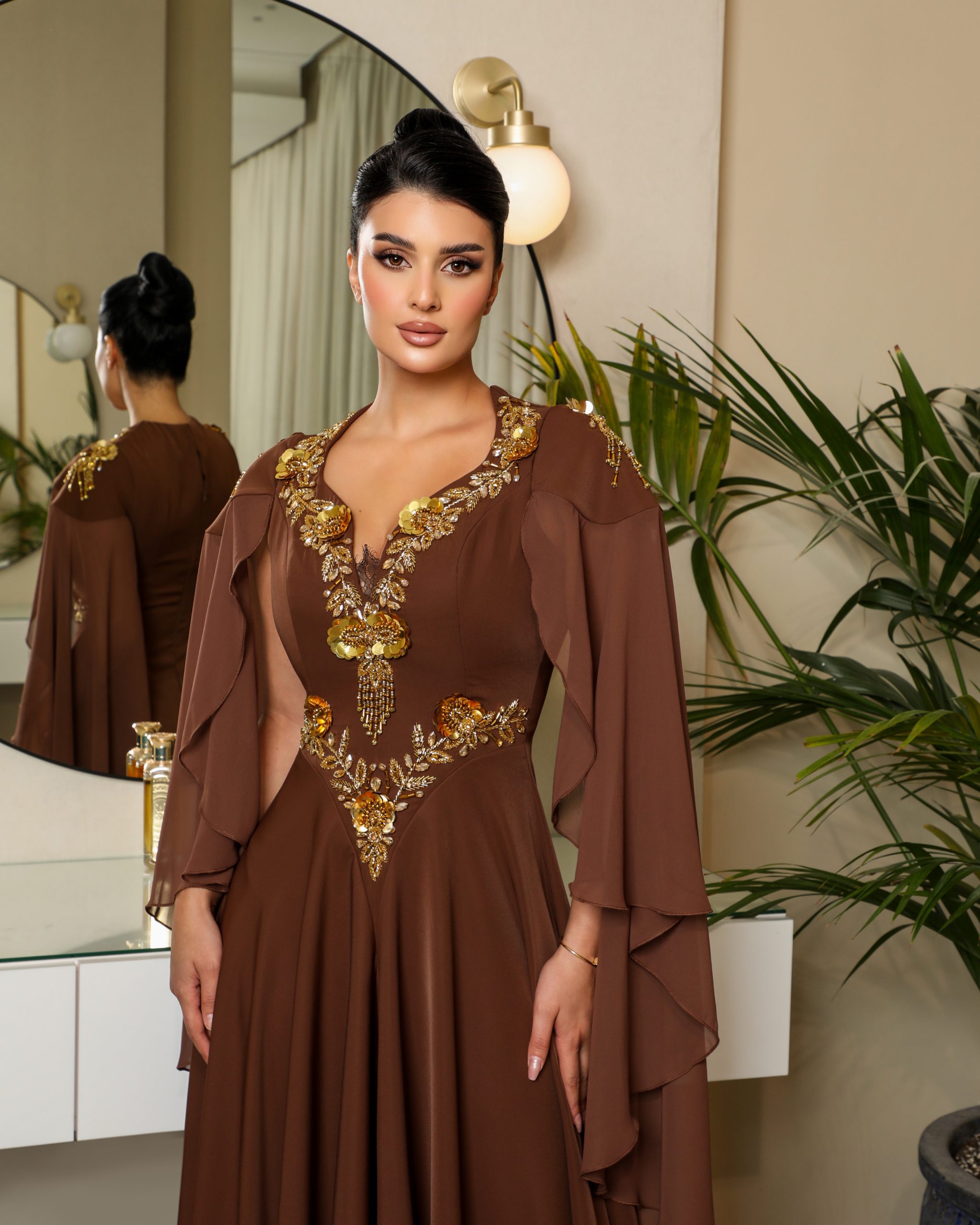القماش : حرير وسط و شيفون